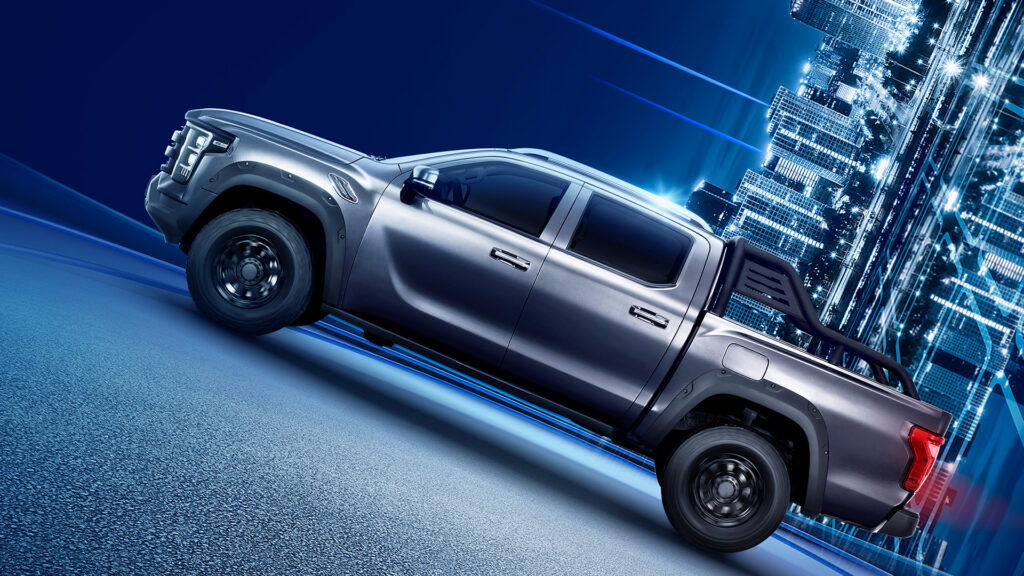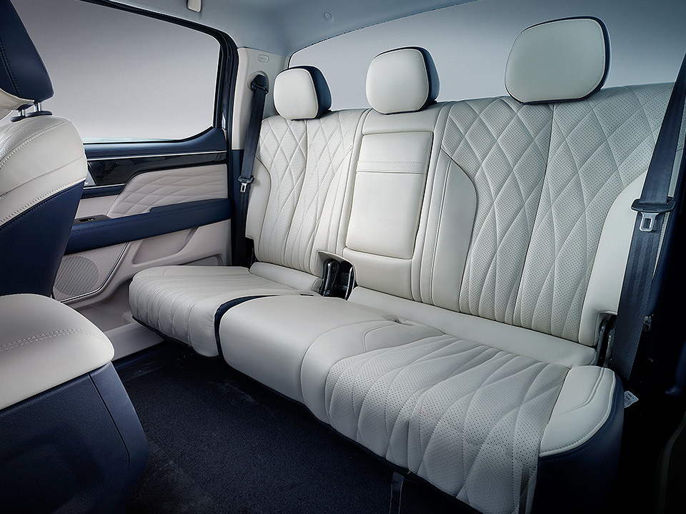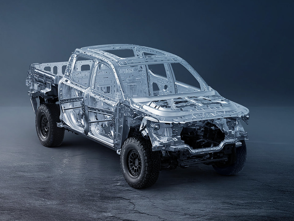 Velká hliníková kola, široké podběhy blatníků a zesílené prahy dále zdůrazňují jeho odolnost, zatímco praktické doplňky, jako jsou elektricky nastavitelná zrcátka, střešní nosiče a schůdky, usnadňují nastupování a vystupování z kabiny.
