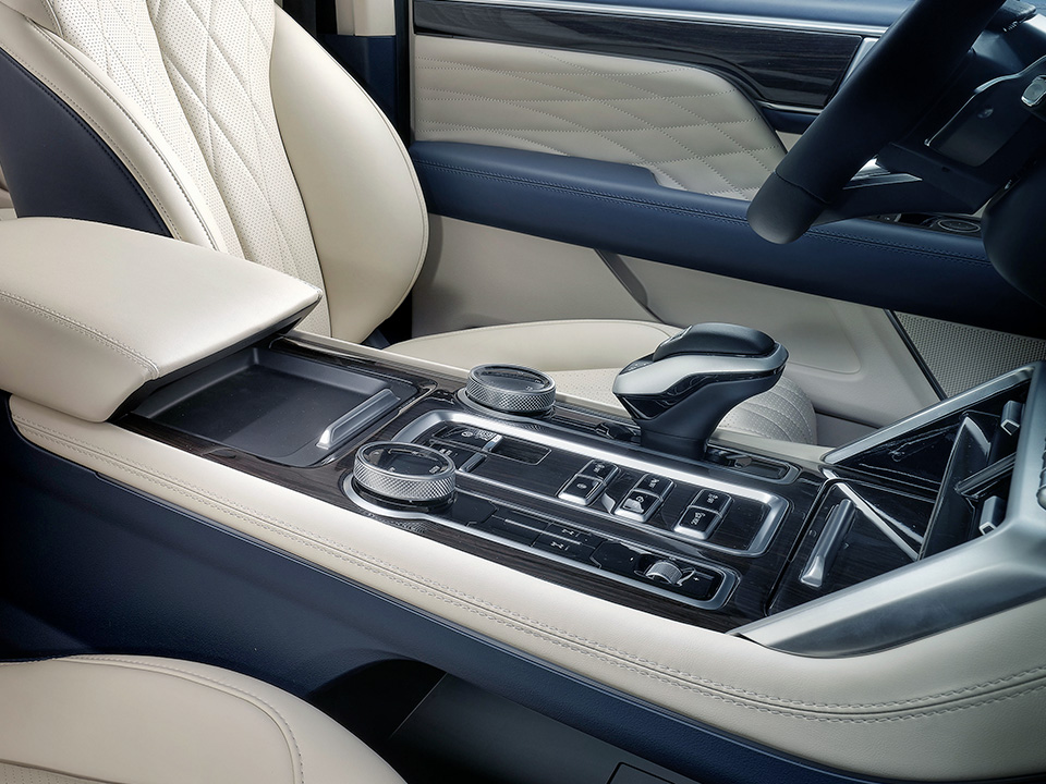 Jeho masivní přední část s chromovanými detaily a výraznými LED světlomety vyvolává dojem síly a bezpečnosti.